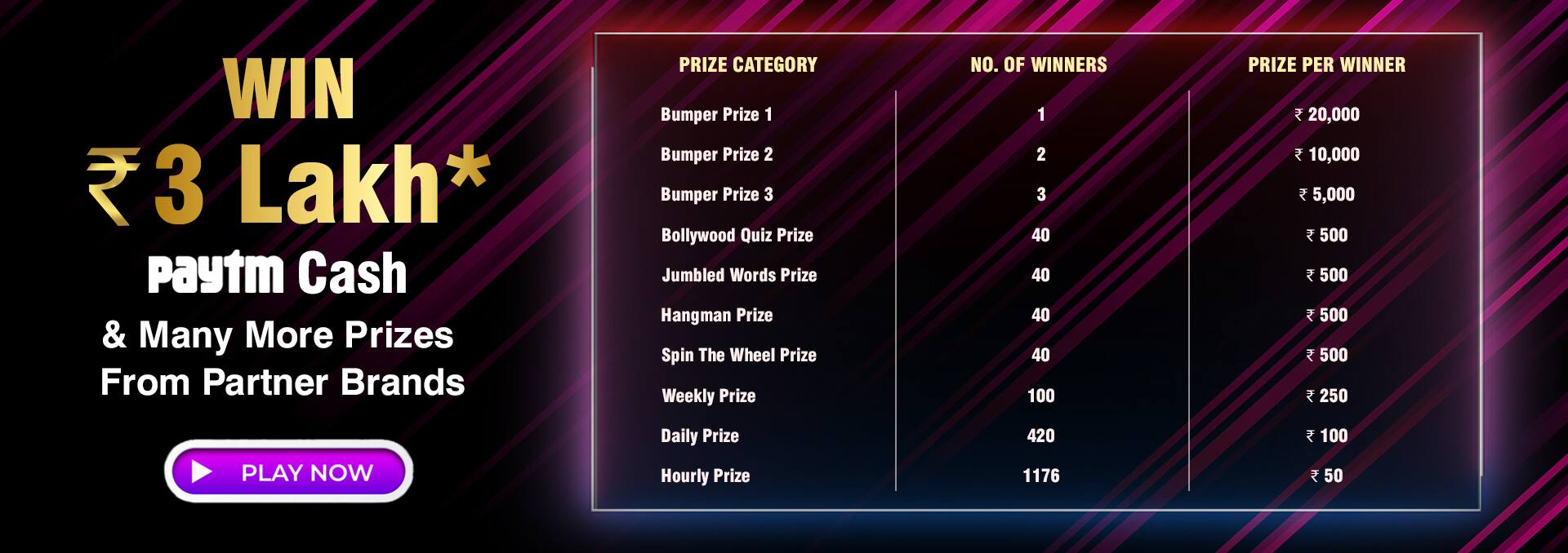 Test your Bollywood Gyan by playing your favourite games. Collect the highest number of Z coins & experience the thrill of Winning Exciting Prizes worth Rs. 30 Lakh!*