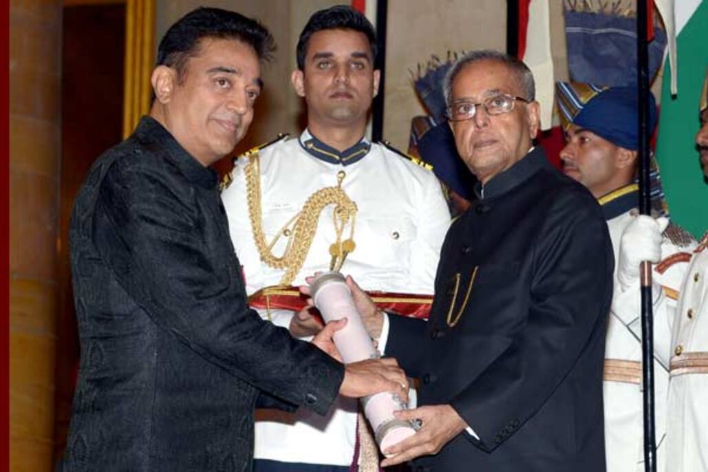 Following his Padma Shri in 1990, Kamal Haasan was back again at the Rashtrapati Bhavan in 2014 to collect his Padma Bhushan. Just a year ago, Kamal was threatening to leave India, after controversy erupted around his magnum opus Vishwaroopam. But it looks like the serene environs of the Presidential palace has soothed him somewhat.