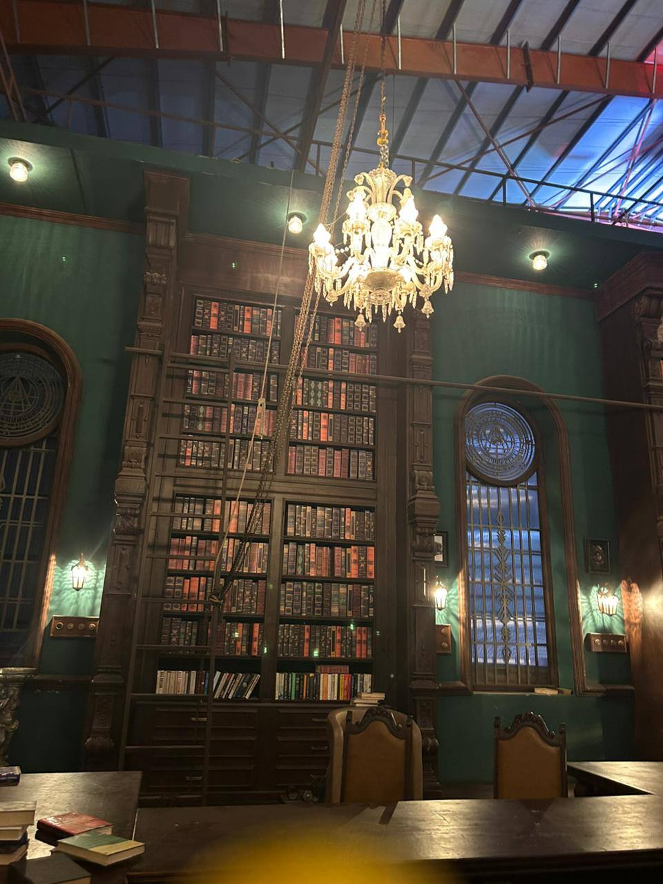 इन तस्वीरों में संजय दत्त के घर को करीब से दिखाया गया है. इन तस्वीरों में संजय दत्त के बड़ी बड़ी तस्वीरें लगी हुई हैं. ये तस्वीर फिल्म 'द राजा साब' की लाइब्रेरी की हैं. तस्वीरों में आप बेशुमार किताबें देख सकते हैं. इस सेट को बड़े बड़े झूमरों के साथ सजाया गया है. फिल्म 'द राजा साब' की इस लाइब्रेरी में ही प्रभास, संजय दत्त के साथ पंगा लेते नजर आ रहे हैं. इन तस्वीरों को देखकर कहना गलत नहीं होगा कि मेकर्स ने फिल्म 'द राजा साब' के सेट को बनाने में बहुत मेहनत की है. फिल्म 'द राजा साब' के सेट पर बहुत ही बारीकी से काम किया गया है. फिल्म 'द राजा साब' के सेट की दीवारों पर पेड़ की जड़ें देखने को मिल रही हैं. फिल्म 'द राजा साब' के सेट को एक पुरानी हवेली की तरह डिजाइन किया गया है.
