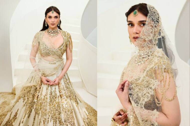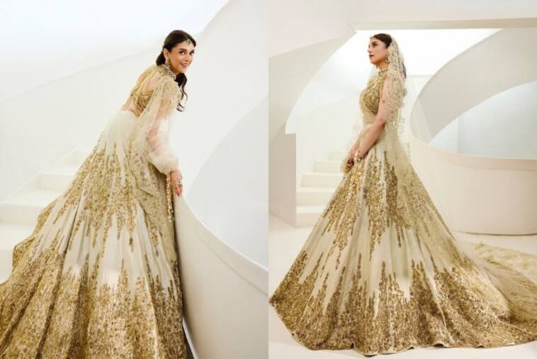 Aditi Rao Hydari Bridal Look: बॉलीवुड एक्ट्रेस अदिति राव हैदरी एक बार फिर अपने रॉयल लुक को लेकर सुर्खियों में हैं. इस बार अदिति ने ऐसा ब्राइडल लुक अपनाया है. जिसे देखकर फैंस उनके दीवाने हो गए हैं. सोशल मीडिया पर अदिति की ये नई तस्वीरें तेजी से वायरल हो रही हैं, जिनमें वो किसी परी से कम नहीं लग रहीं. दरअसल, अदिति ने हाल ही में डिजाइनर गौरव गुप्ता के लिए एक फोटोशूट किया है, जिसमें वो दुल्हन की तरह सजी नजर आईं. व्हाइट और गोल्डन कलर के लहंगे में अदिति का अंदाज बेहद रॉयल और ग्रेसफुल दिखा.