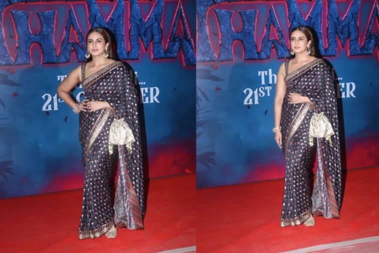 'थामा' की स्क्रीनिंग में हुमा कुरैशी का लुक देखने लायक था. एक्ट्रेस ने वेस्टर्न की जगह ब्लू कलर की बनारसी सिल्क साड़ी चुनी, जिसमें वह बेहद एलिगेंट और खूबसूरत लग रही थीं. उनका यह ट्रेडिशनल अवतार उनके फैंस को काफी पसंद आ रहा है.