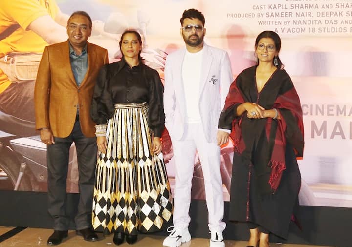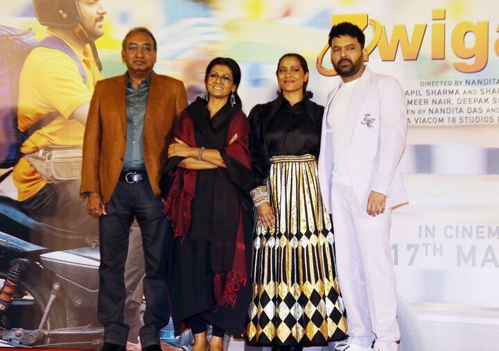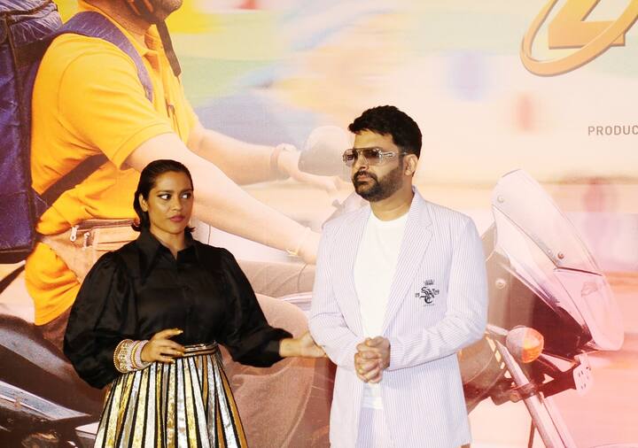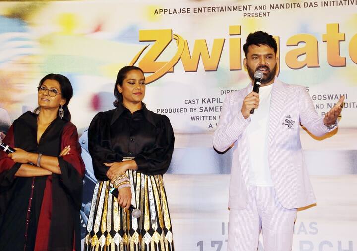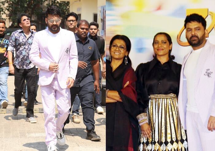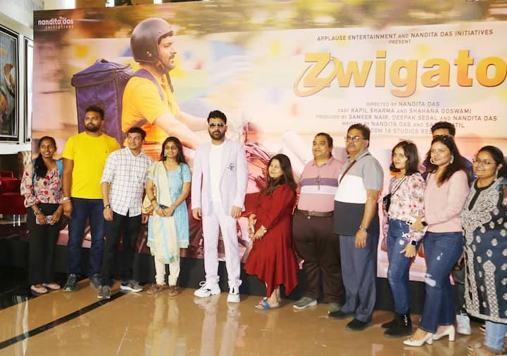Zwigato Trailer Launch Photos: स्टैंडअप कॉमेडियन कपिल शर्मा की बॉलीवुड इंडस्ट्री में एंट्री हो चुकी है। उन्होंने किस किसको प्यार करूं और फिरंगी जैसी फिल्मों में अपनी एक्टिंग का हुनर भी दिखाया है और अब कपिल शर्मा एक और फिल्म के साथ बड़े पर्दे पर पेश हो रहे हैं। कॉमेडियन जल्द ही 'ज्विगाटो' में दिखाई देंगे, जिसका ट्रेलर भी आज रिलीज हो गया। सोशल मीडिया पर कपिल की इस फिल्म का ट्रेलर काफी पसंद किया जा रहा है। मुंबई में एक शानदार इवेंट के बीच इस फिल्म का ट्रेलर लॉन्च हुआ, जिसमें कपिल शर्मा ने बॉडी गार्ड्स के बीच धांसू एंट्री मारी। इतना ही नहीं, उन्होंने अपनी फिल्म की टीम के साथ एक से बढ़कर एक पोज भी दिए।