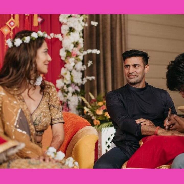 Payal Rohatgi Sangram Singh Wedding: टीवी और बॉलीवुड की मशहूर एक्ट्रेस पायल रोहतगी की शादी में बस कुछ ही पल बाकी हैं। एक्ट्रेस रेस्लर संग्राम सिंह (Sangram Singh) के साथ मोहब्बत की नगरी आगरा में सात फेरे लेंगी। उनकी शादी को लेकर फैंस भी खूब एक्साइटेड हैं। लेकिन सात फेरों से पहले पायल रोहतगी और संग्राम सिंह की मेहंदी सेरेमनी की तस्वीरें सोशल मीडिया पर जमकर वायरल हो रही हैं, जिसमें पायल के हाथों पर संग्राम के नाम की मेहंदी रची नजर आई। इन सबमें खास बात तो यह भी रही कि खुद संग्राम सिंह ने भी पायल रोहतगी के नाम की मेहंदी लगवाई। तो चलिए एक नजर डालते हैं इन तस्वीरों पर-
