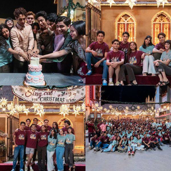 सुहाना ने 'द आर्चीज' की शूटिंग खत्म कर फिल्म की टीम संग काटा केक, शाहरुख की लाडली ने खुशी कपूर के साथ दिए पोज
