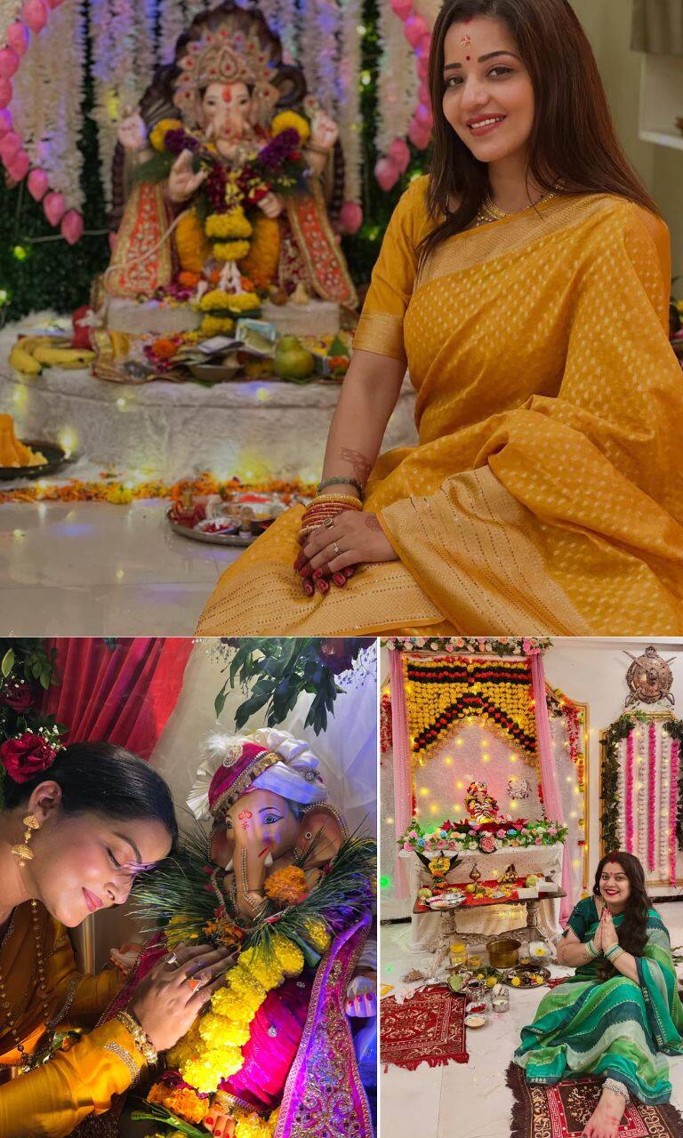 भोजपुरी क्वीन मोनालिसा ने अपने घर में धूमधाम से बप्पा का स्वागत किया.