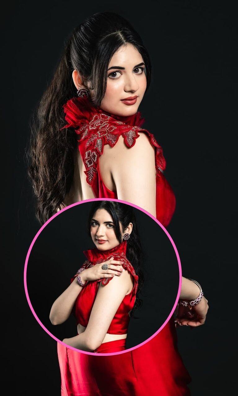 रेड आउटफिट में हर्षाली ने जबरदस्त पोज दिए हैं और उनका ये ग्लैमरस लुक इंटरनेट पर आग लगा है.