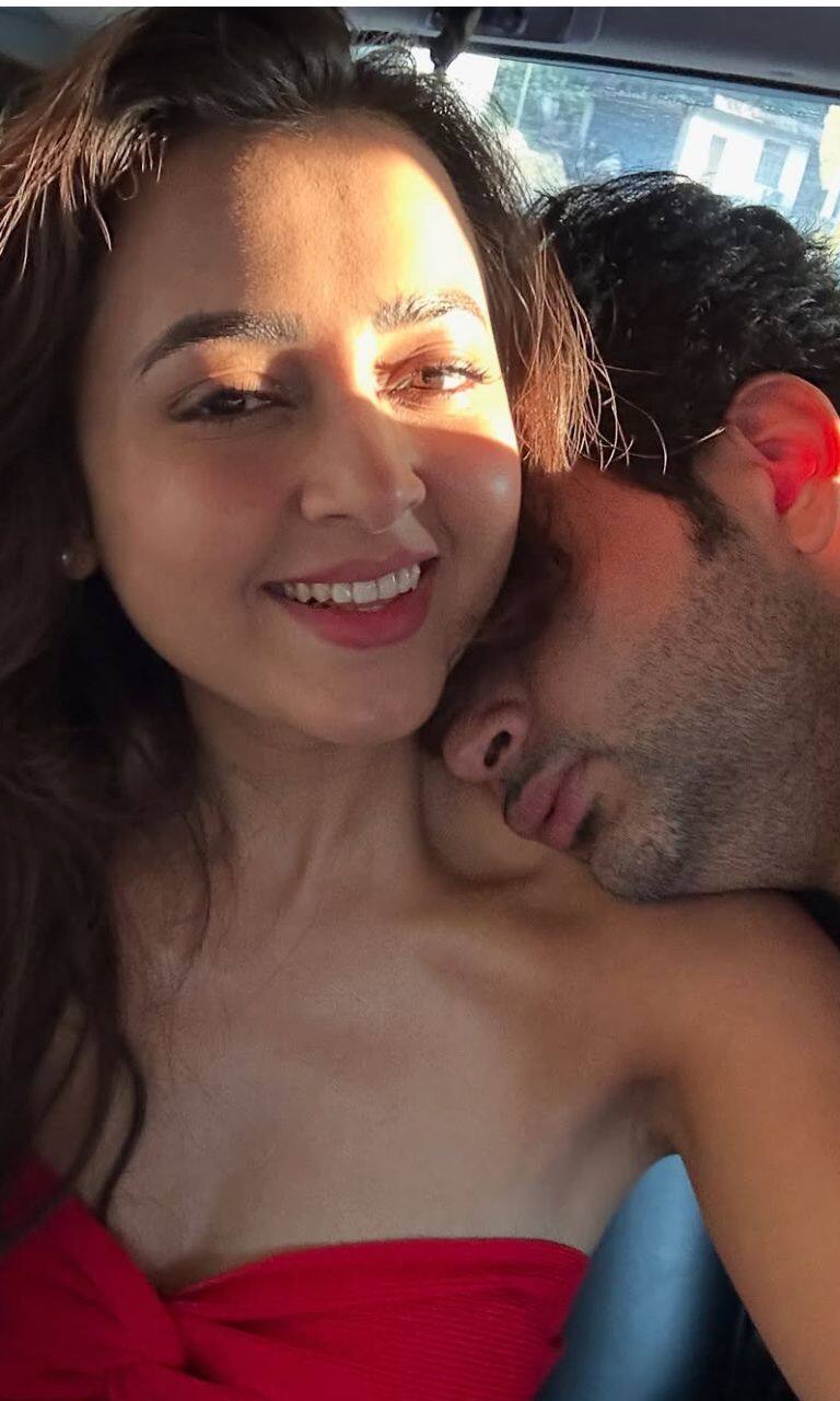 तेजस्वी रेड ट्यूब टॉप में गॉर्जियस लग रही हैं, वहीं एक फोटो में करण उनकी बाहों में आराम करते दिख रहे हैं.