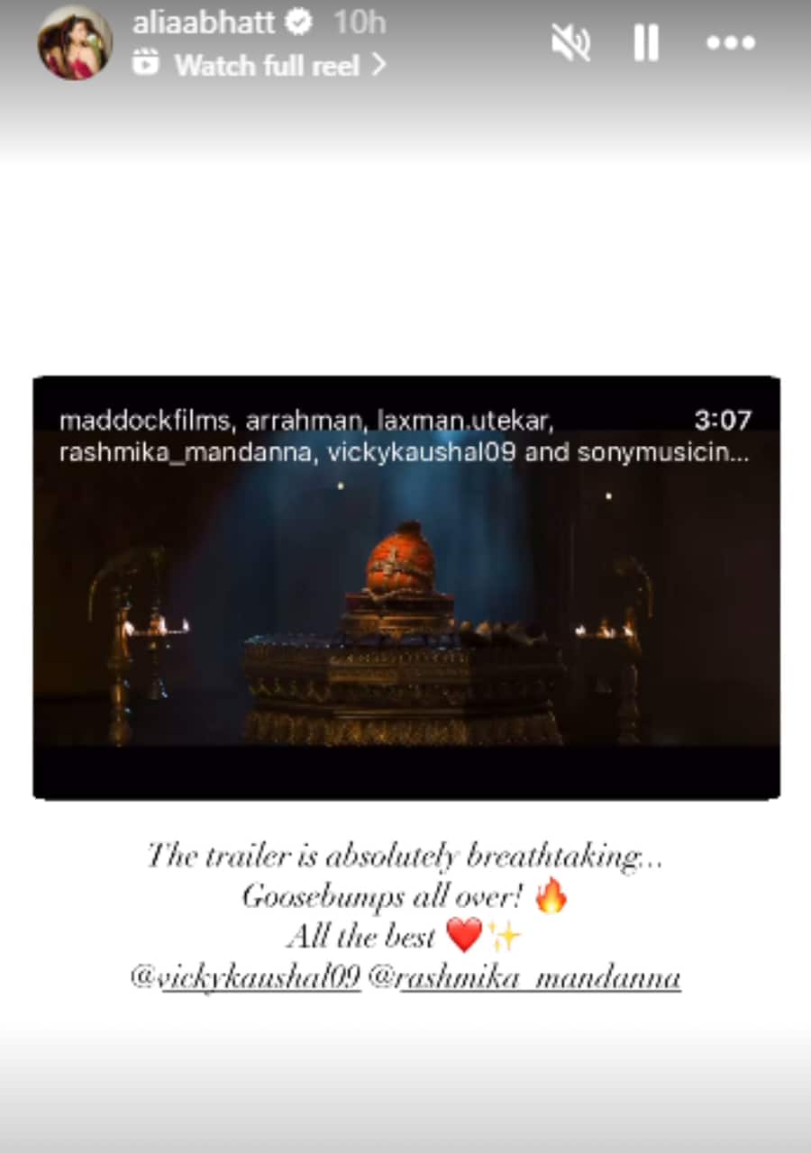 The movie also stars Rashmika Mandanna and Akshaye Khanna. Rashmika's look as Yesubai also received mixed response. Some did not like her look and felt she does not have that Maharashtrian face. Everyone has their own version of positive and negative points for the trailer of Chhaava. Even actress Alia Bhatt has now shared her views on the trailer of the film.