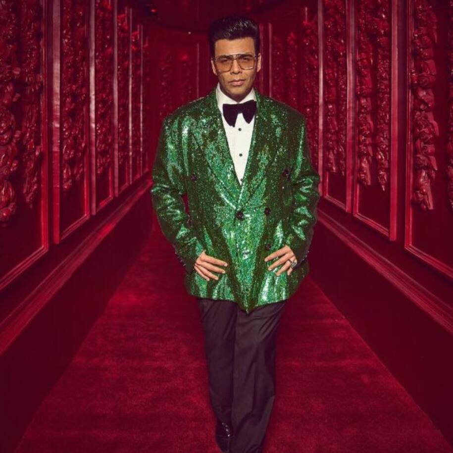 Karan Johar celebrated his 50th birthday yesterday and his birthday bash at YRF was the talk of the town. It was attended by many prominent Bollywood celebrities like Shah Rukh Khan, Hrithik Roshan, Katrina Kaif, Vicky Kaushal, Salman Khan and more. Now, Karan to Instagram today to share a post in which he can ne seen making fun of his green birthday outfit. His self-deprecatory humour was on point.