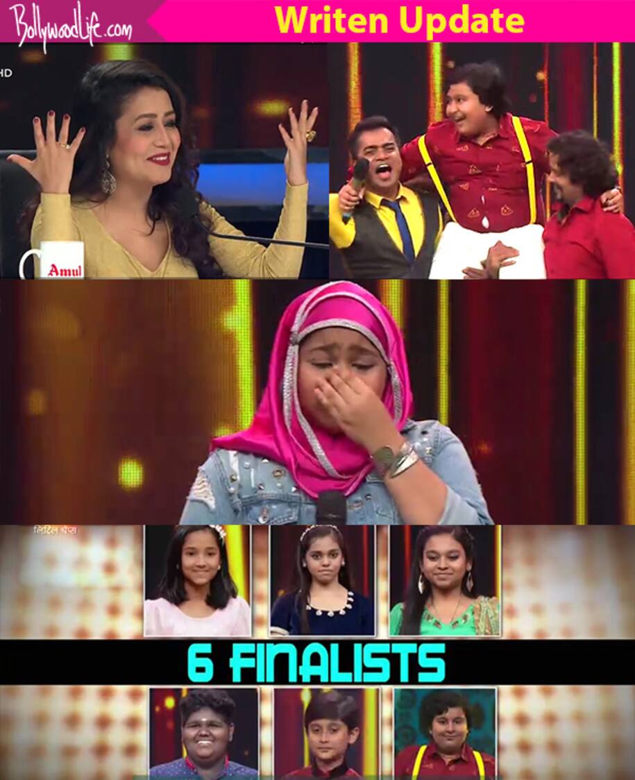 Sa Re Ga Ma Pa Li’l Champs today is major turn of tables for the champs. We get the six finalists for the Great Grand Finale as some will go home with tears but some will walk straight to the end of the show. The theme today is 'aaj likhengey kal' the new new theme of Zee TV. The first one is Vaishnav Girish who who sets the levels real high as the jury jumps out of their seats to salute the boy. Dhroon follows with an electrifying performance to Rafta Rafta and Himesh renames the boy as Tikoo Maharaj. Dhroon is one of the finest performers the stage has seen indeed. Sonakshi follows with a divine classical music and the judges bless her with a very great career ahead as she is one of the voices that the industry cannot miss. SMP the yodeling queen starts with her usual yodeling and leaves no stone upturned with Kaisi paheli hae ye kaise paheli zindagani. Jayes walks in next and says I love you to Arpita from the stage. He also sings the song arziya in his own invented language.