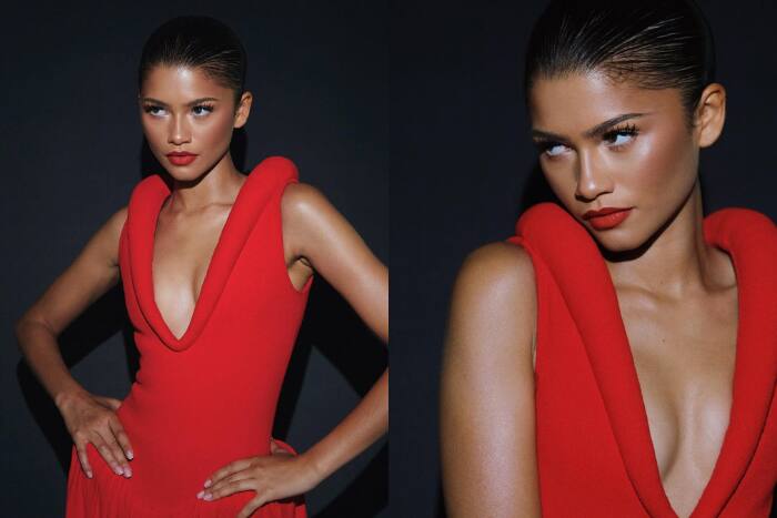 Zendaya emphasized her desire for attention by donning a corset-style top that transitioned to a flared fit from the waist down, without any accessories or jewelry. Her hair was in a slick-back bun, and the red lips was the center of the look, highlighted by her glowing skin and sculpted cheekbones.