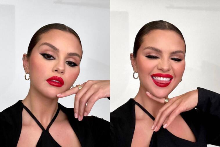 Follow Selena Gomez's advice when it relates to glamour. The vocalist and beauty mogul posed with her finger to her chin, showcasing a deep red lip and an intense winged eyeliner that she also applied to her waterline, amplifying the daring aspect of her glam.
